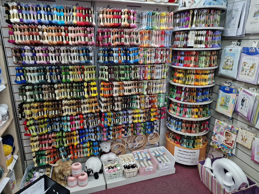 Our Haberdashery department has everything from buttons to bows, please ask if you are looking for something special. Dress forms, Books, Videos. We sell DMC stranded cotton and tapestry wool as well as a range of embroidery accessories.