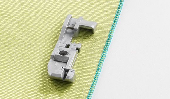This foot is used for sewing yarns (cords, nylon gut) up to a thickness of 1.0 mm. This produces an undulating or stiffer hem (e.g. on wedding dresses and valance).