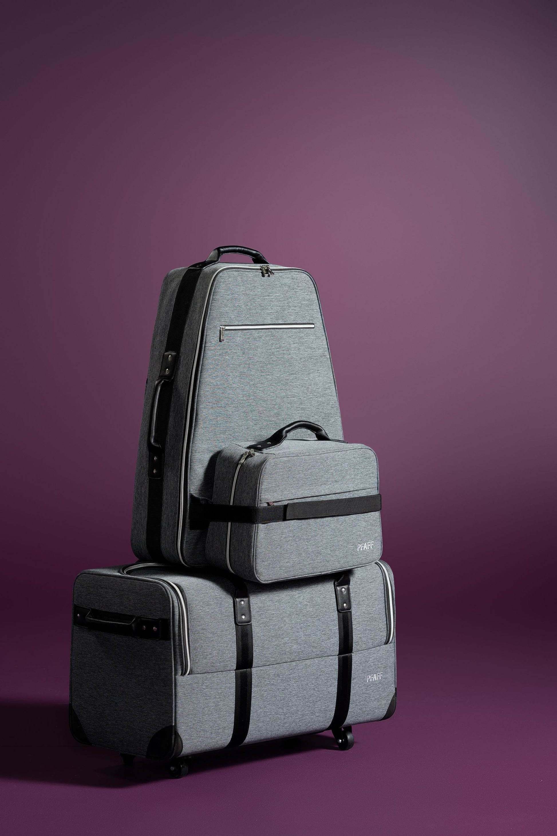 Luggage style carrying bag with packing insert for embroidery unit