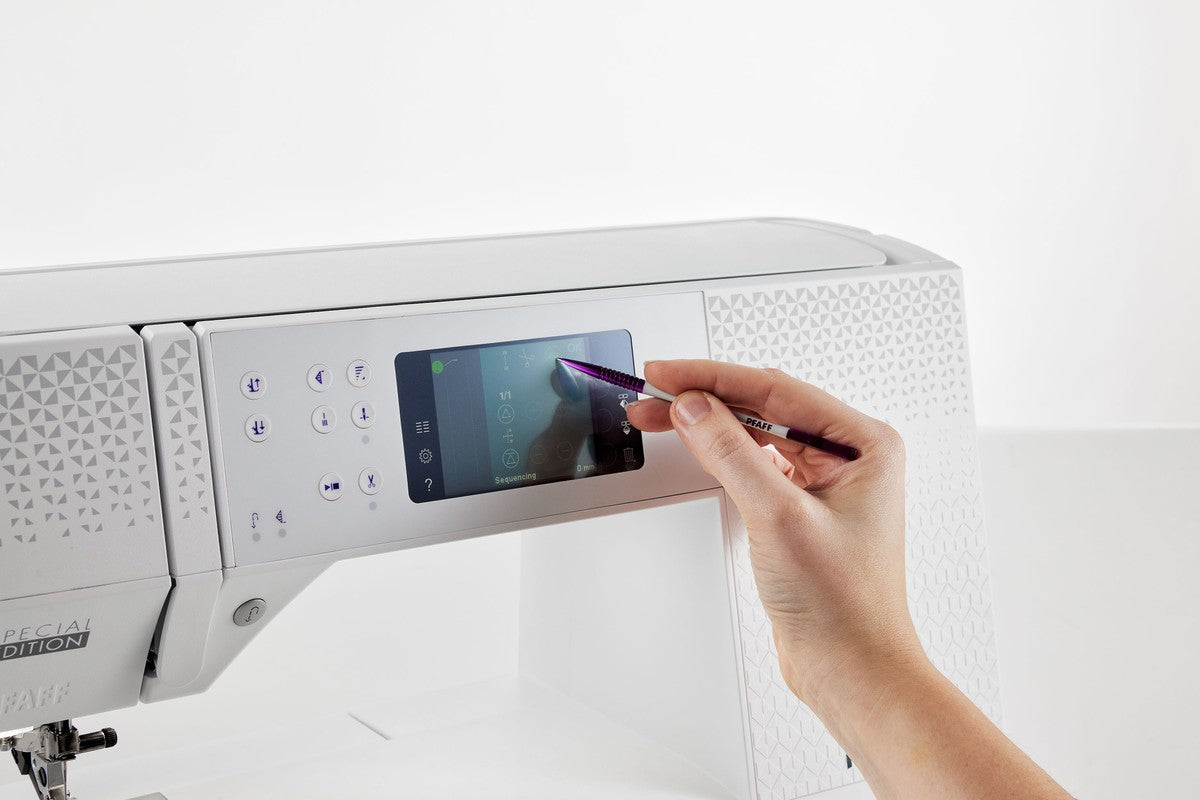 See stitches in real size and get all the sewing information you need directly on a high-resolution color touch screen that measures 70mm x 53mm (3.5").